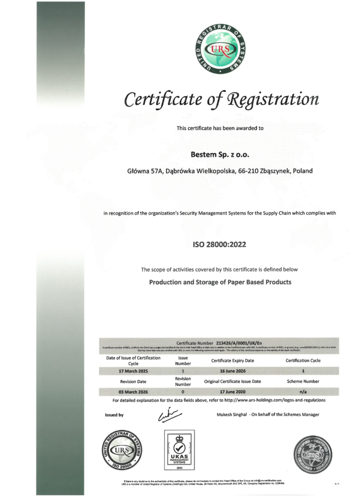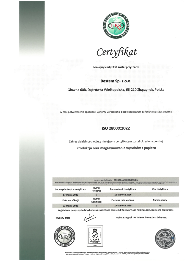 Certyfikat ISO 28000:2022